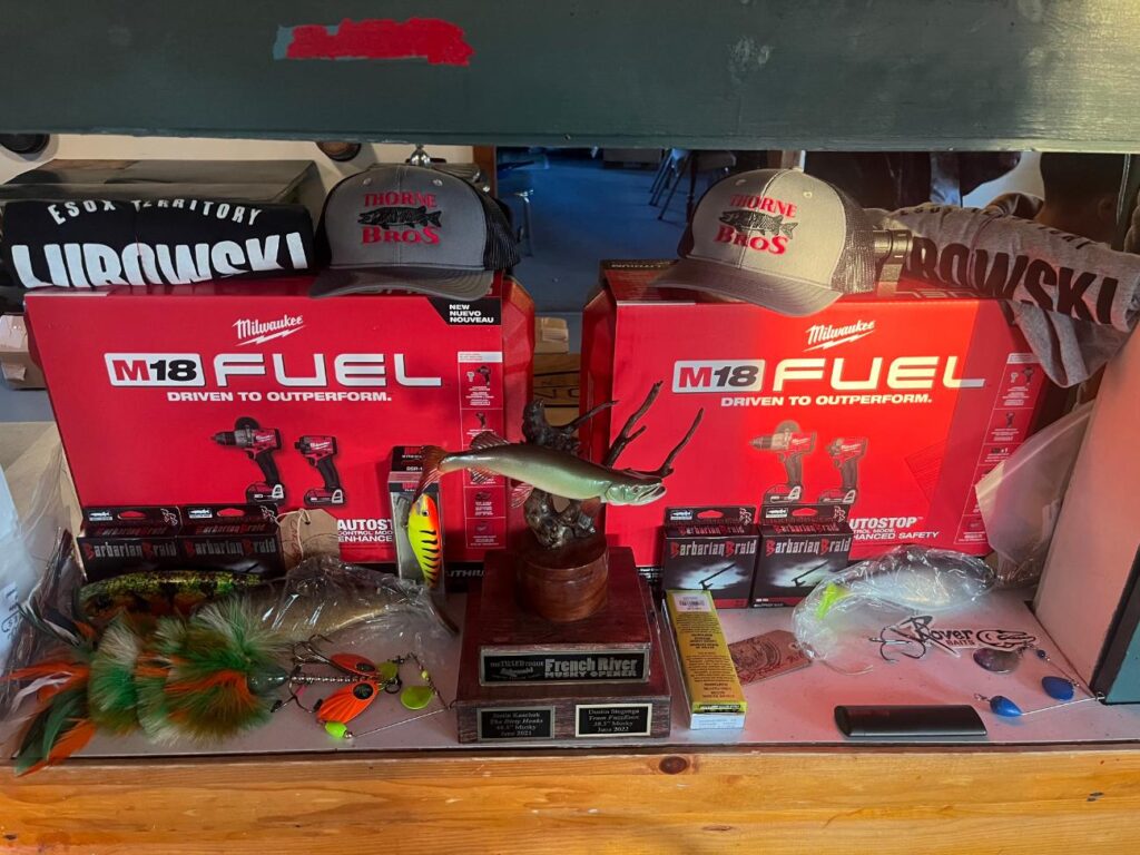 It’s also something more. The French River Musky Opener has grown into a community-driven event, where all proceeds from our raffle table, silent auction, and remaining ticket funds are donated to Dokis First Nation, supporting initiatives like the Dokis Food Bank, the Leonard Dokis Foundation, the Dokis Childrens Hockey League and more.