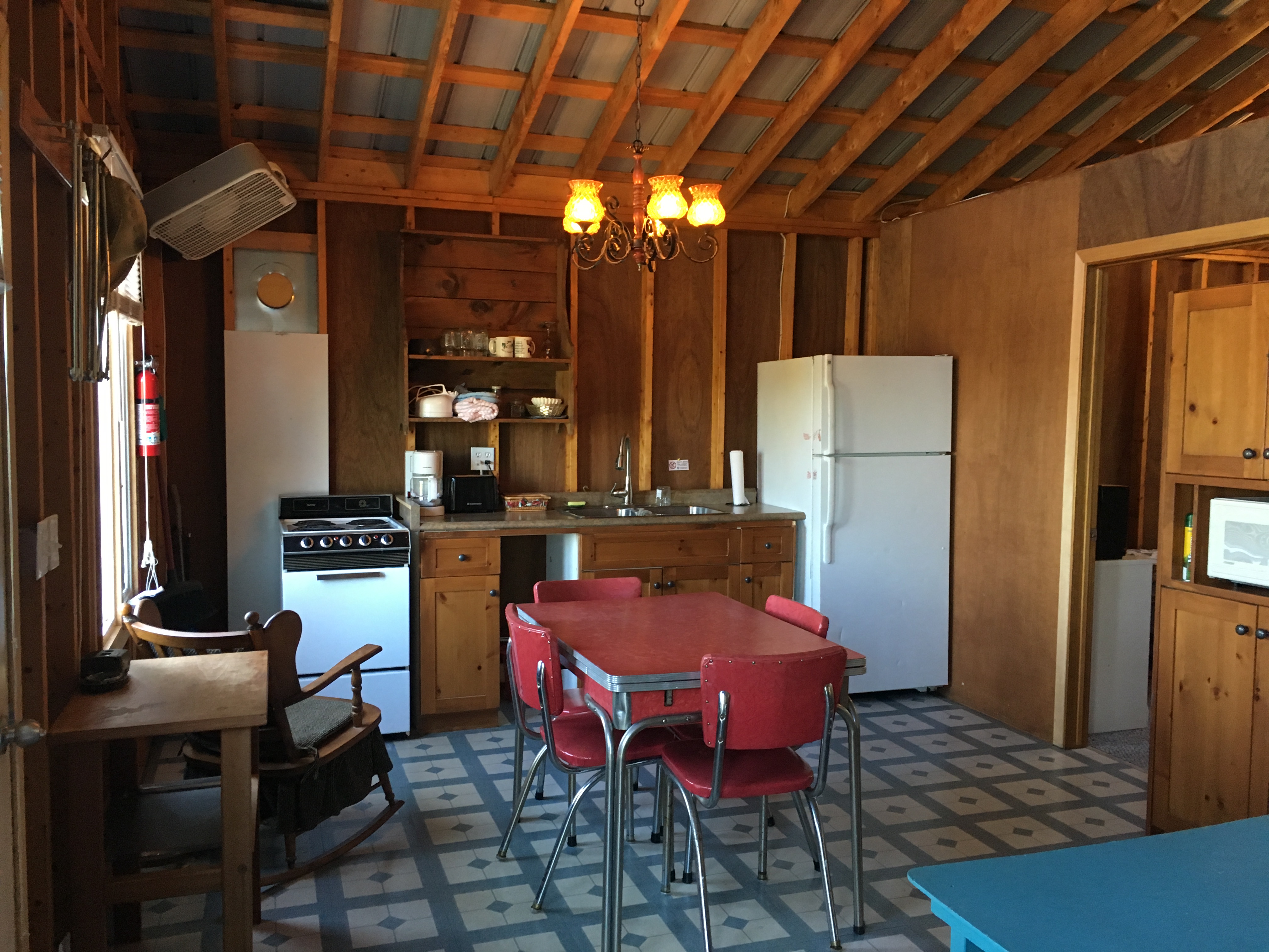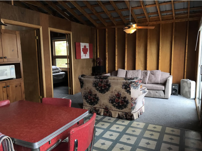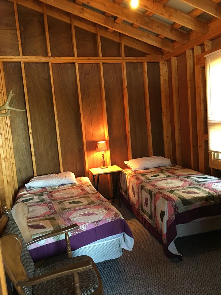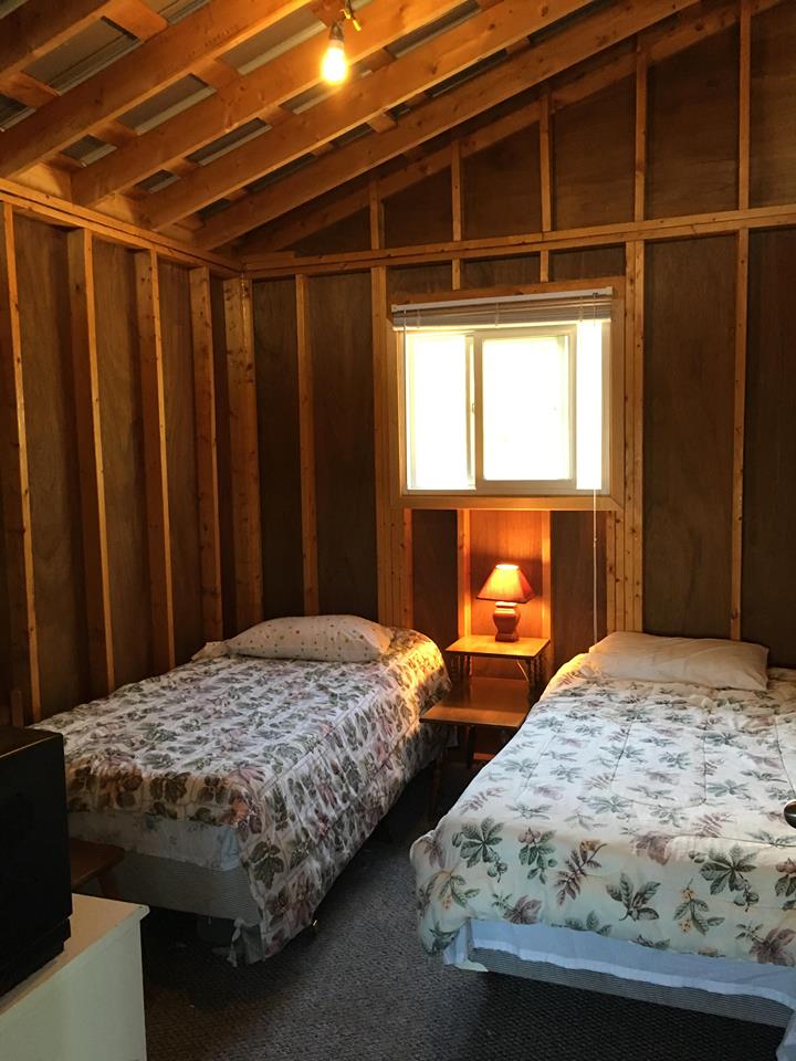 Cabin 1 is our most recently built cabin boasting 2 spacious bedrooms (with 2 single beds in each), a 3 piece bath with hot shower and toilet, a fully equipped kitchen with full size stove and fridge, and a comfy living area to share quality time with your friends or family.